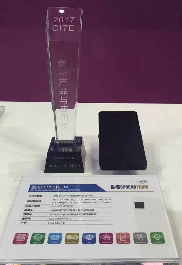 作为业界领先的LTE芯片平台,展讯SC9861G-IA采用英特尔先进的14纳米制程工艺,内置2.0GHz高性能的英特尔架构处理器以及Imagination PowerVR GT7200图像处理器,支持5模CAT 7通讯,可提供卓越的性能表现。同时该平台可实现顶级的多媒体配置,支持高达2600万像素摄像头,实现前后双摄像头的实时摄录、景深、高清图像融合及真正的3D拍摄等功能。在安全性上,通过英特尔独有的芯片虚拟化技术,可支持多域安全系统架构,为智能终端提供丰富灵活的安全保障。目前展讯SC9861G-IA是市场上最具差异化及竞争力的面向中高端市场的LTE芯片产品之一。